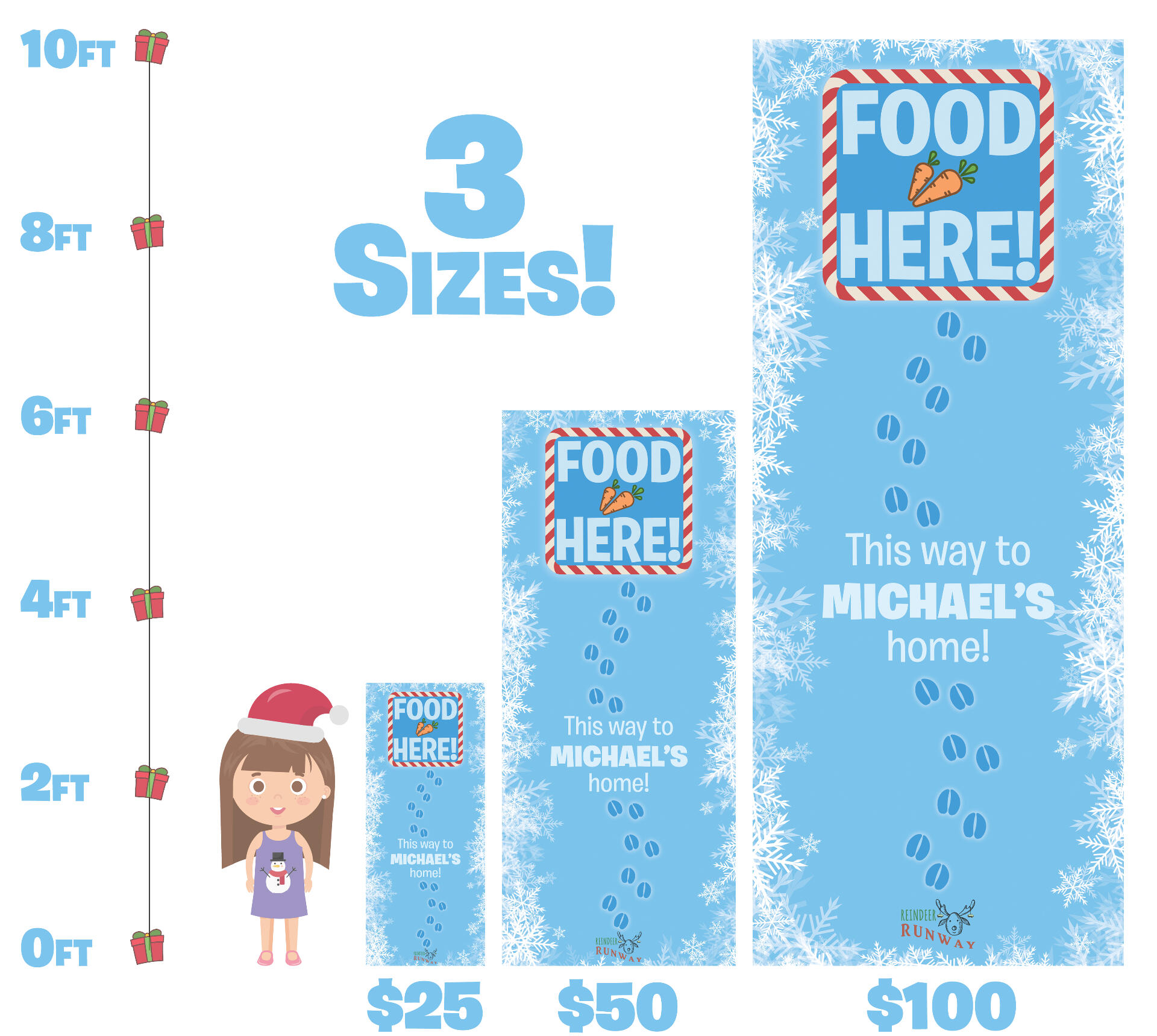 To accommodate all manner of homes that Santa will be visiting, we’ve designed ReindeerRunway in three sizes:The "Jumbo"(4ft x 10ft) perfect for your front yard!