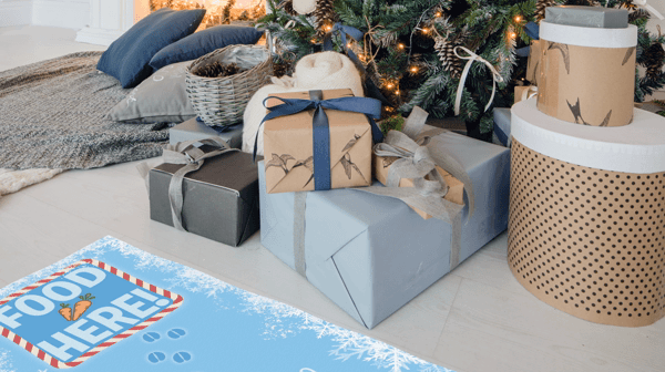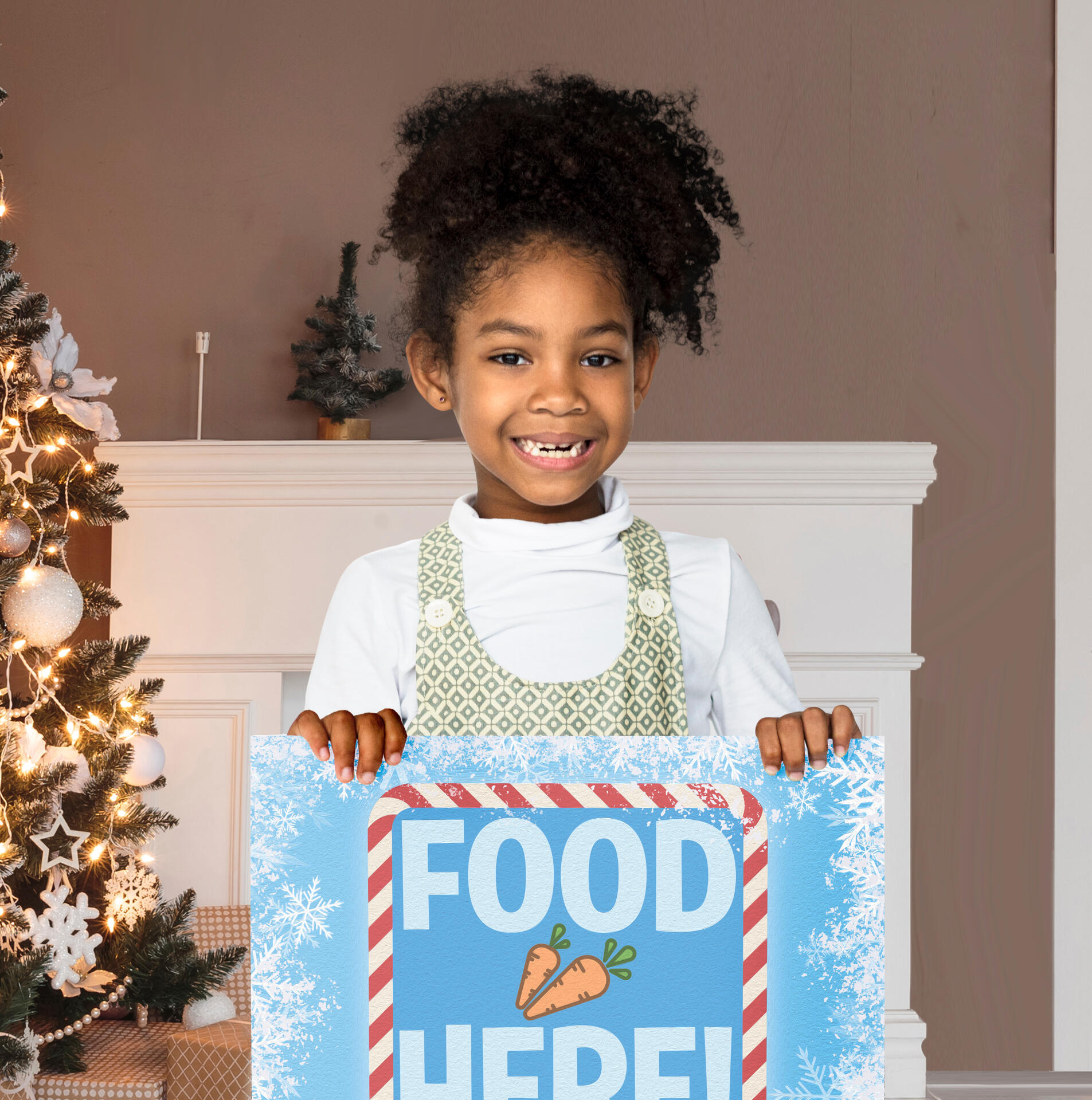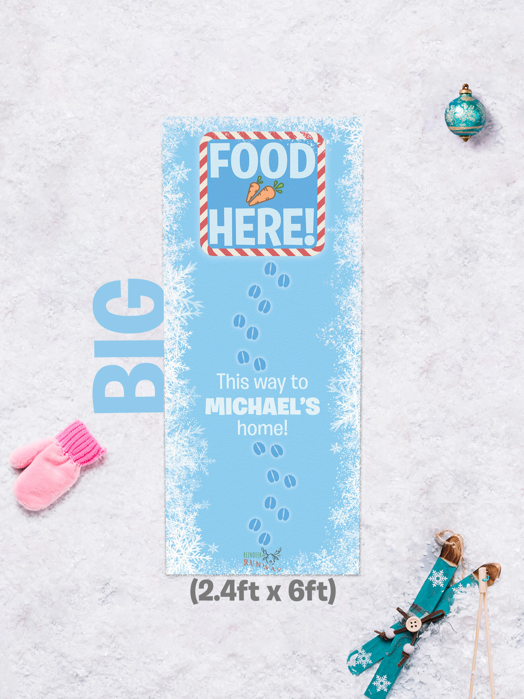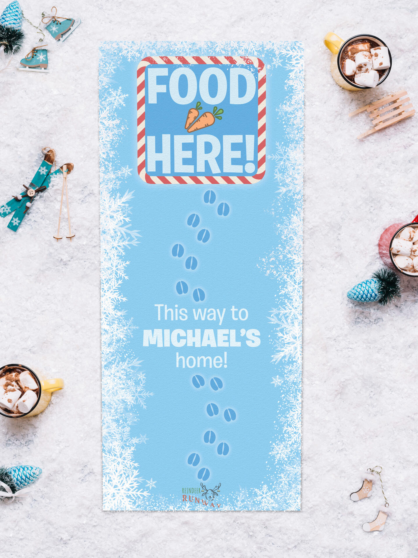 So your ReindeerRunway is unrolled and positioned - now what? Well, now for the Reindeer food! At the end of the runway, you’ll find a large, candy-cane-bordered, “FOOD HERE” landing pad - the perfect bull’s-eye for the Reindeer to aim for! This is where you and your family will place whichever treats you’d like:A bundle of crisp carrots? Tasty!